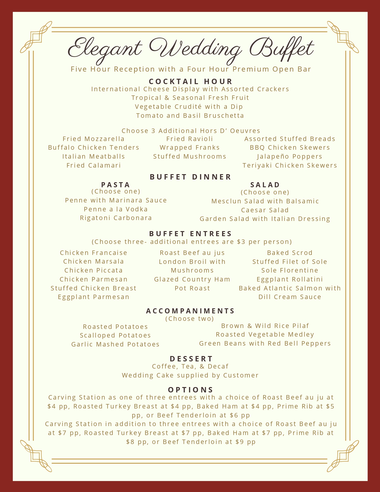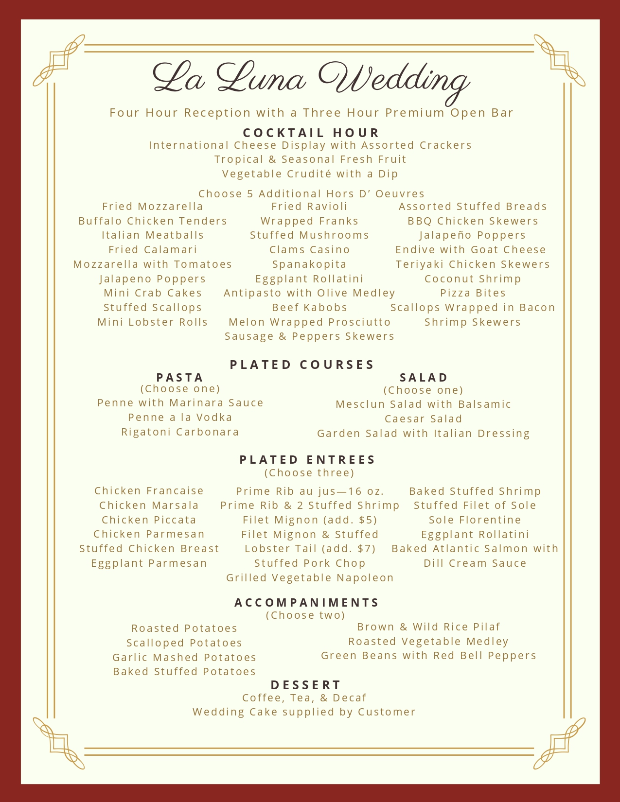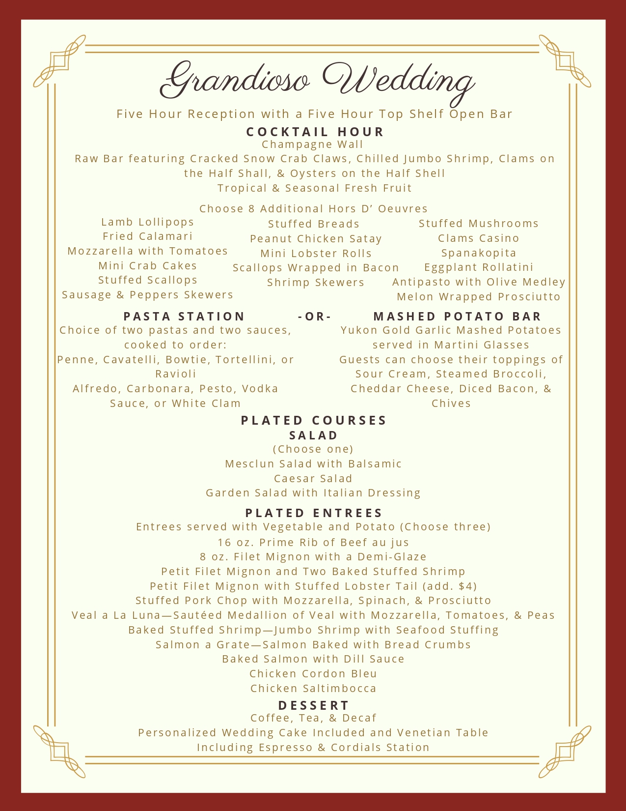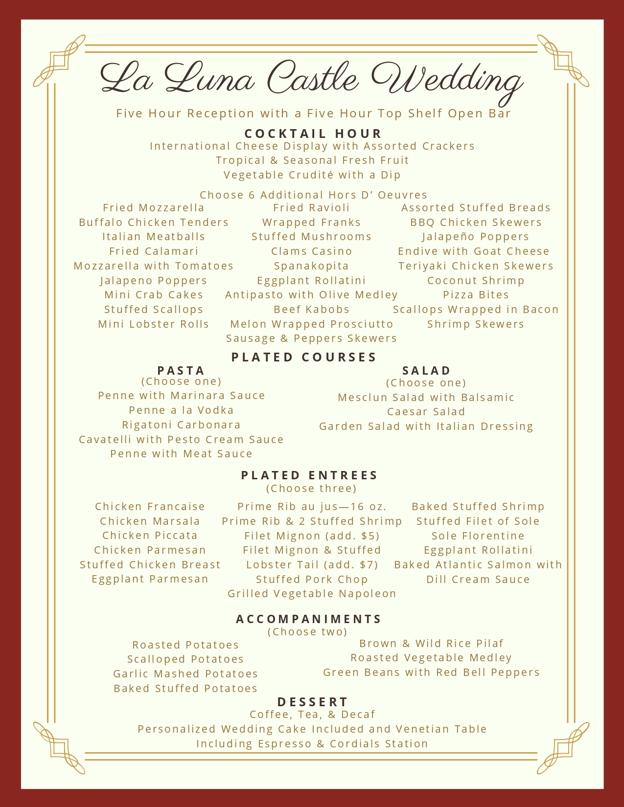 At Bill Miller’s Castle, we understand that every couple is unique. Our wedding packages are fully customizable to ensure your day is everything you imagined and more. We offer: